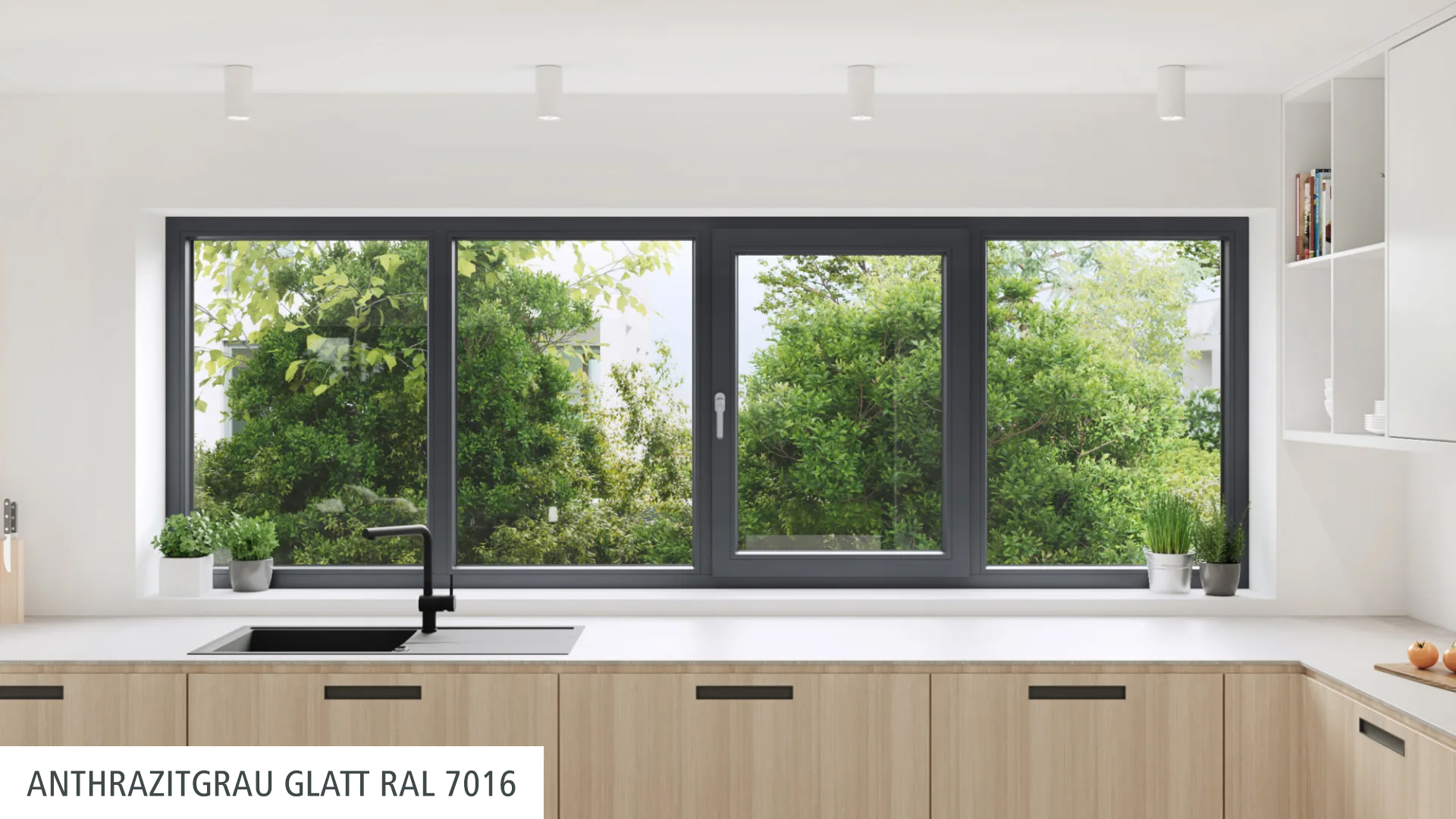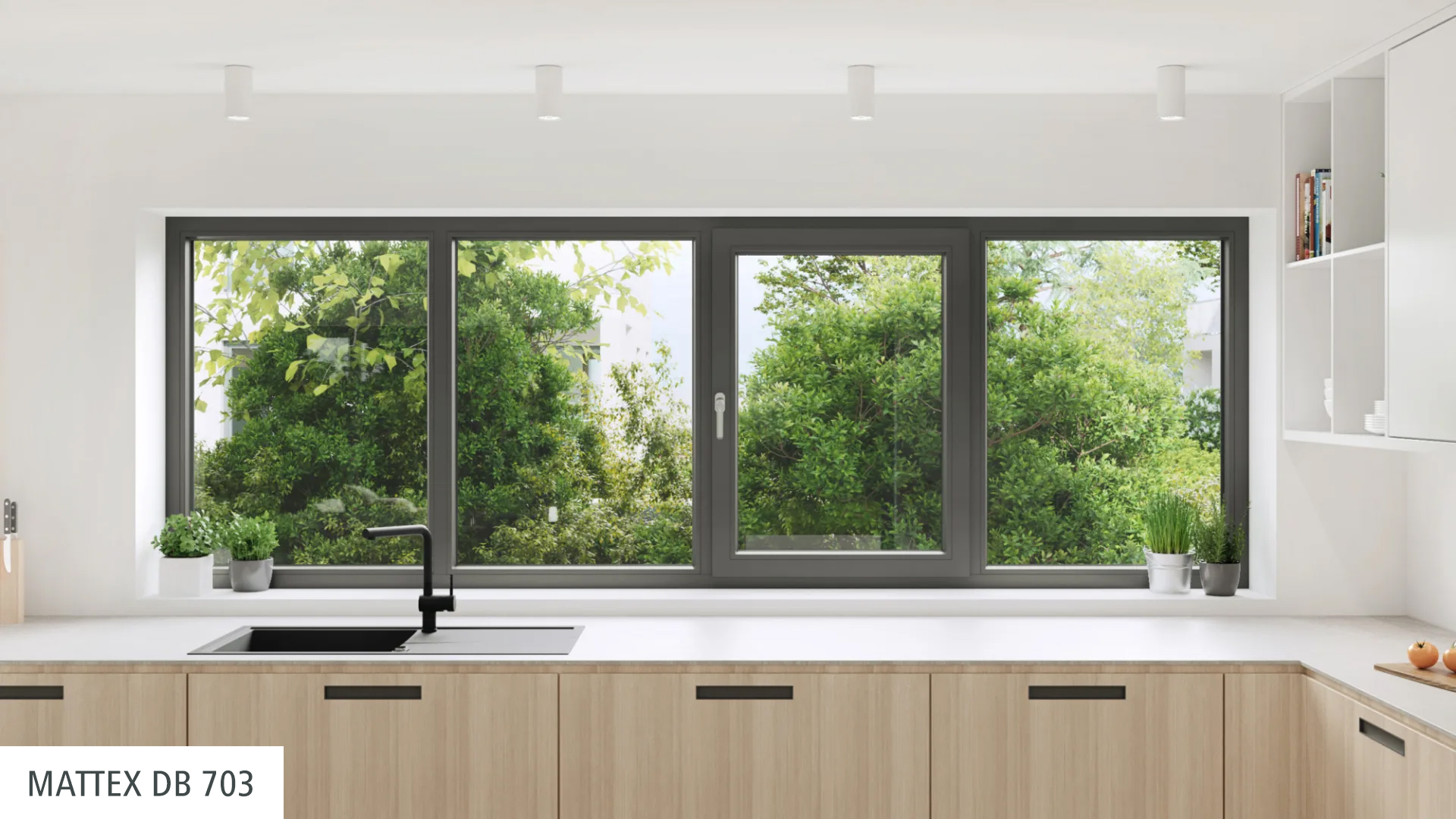 Wählen Sie aus einer breiten Palette von über 200 Metallic- sowie Unifarben und Holzdekoren. Die Rahmenoberflächen können innen wie außen verschiedenfarbig gestaltet werden, so dass Sie im Innenbereich – angepasst an Ihren Wohnstil – andere Farbakzente setzen können, als im Außenbereich. Unsere Trendfarben im Überblick: