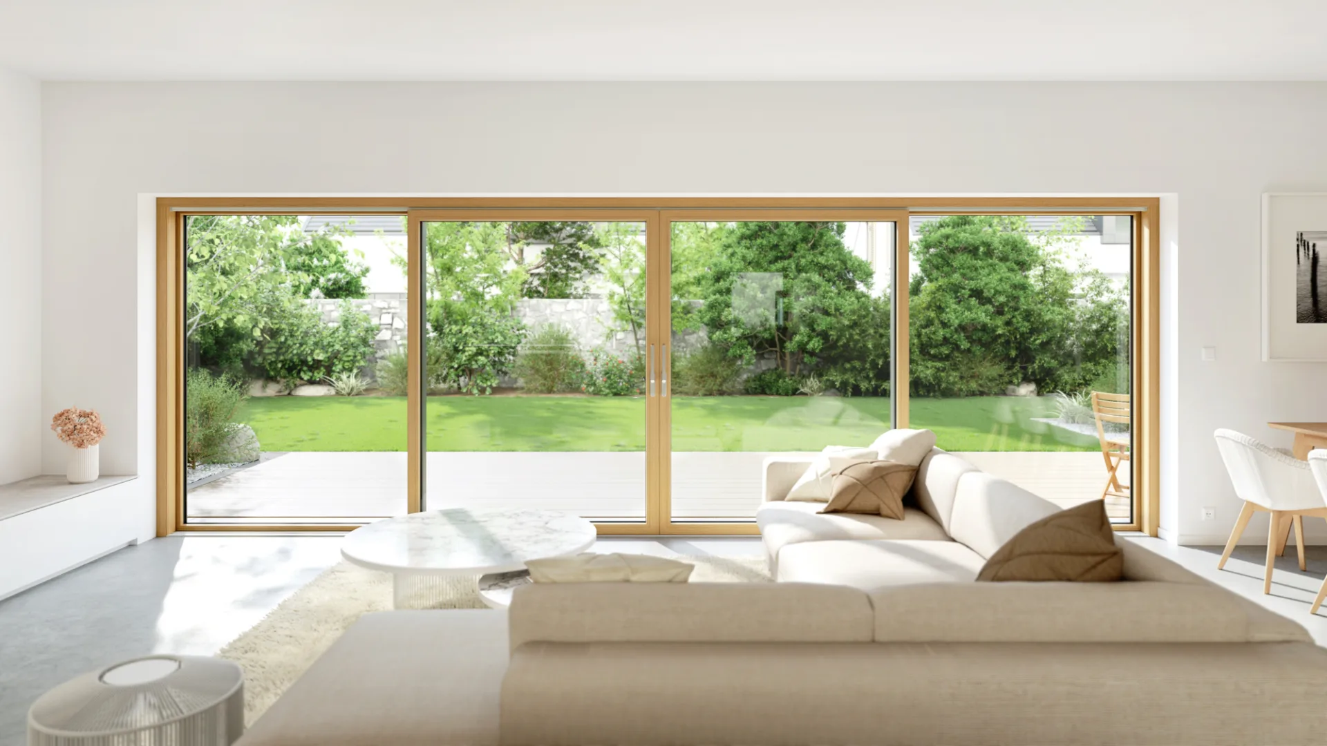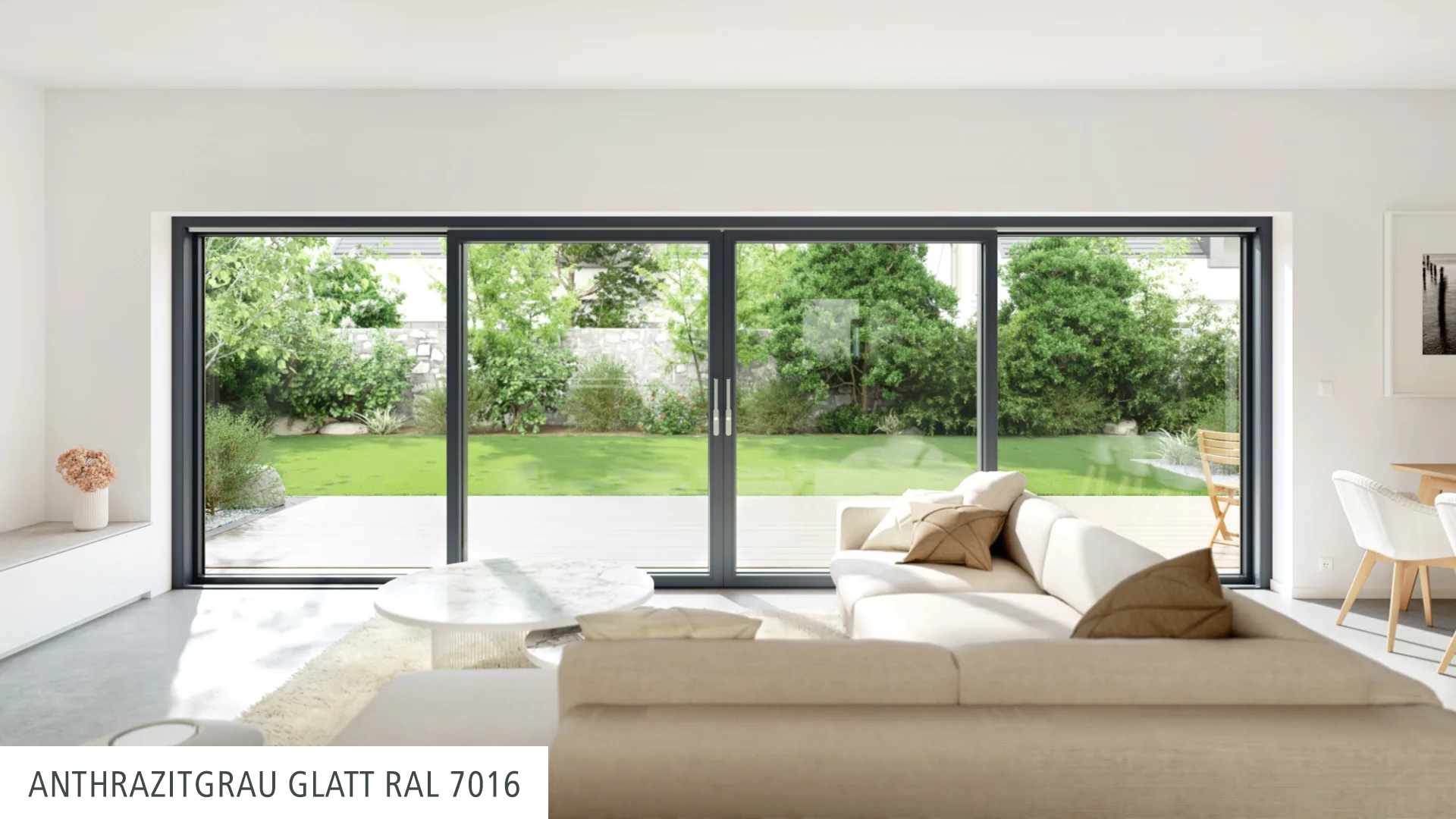 Wer sich helle, lichtdurchflutete Räume wünscht, wird die großen Glasflächen und die großen Durchgangsbreiten, wie sie nur Schiebetüren ermöglichen, lieben. Doch wie viel Rahmen darf es sein? Setzen Sie mit Ihrer Kunststoffschiebetür lieber farbige Akzente in Ihrem Zuhause oder bevorzugen Sie einen auf das Minimum reduzierten Rahmen, welcher die Grenzen zwischen innen und außen nahezu verschwimmen lässt?