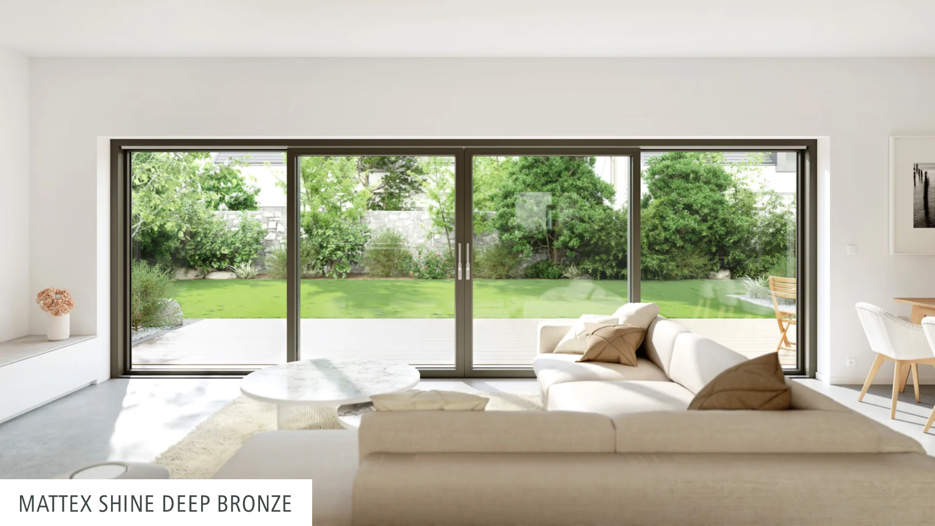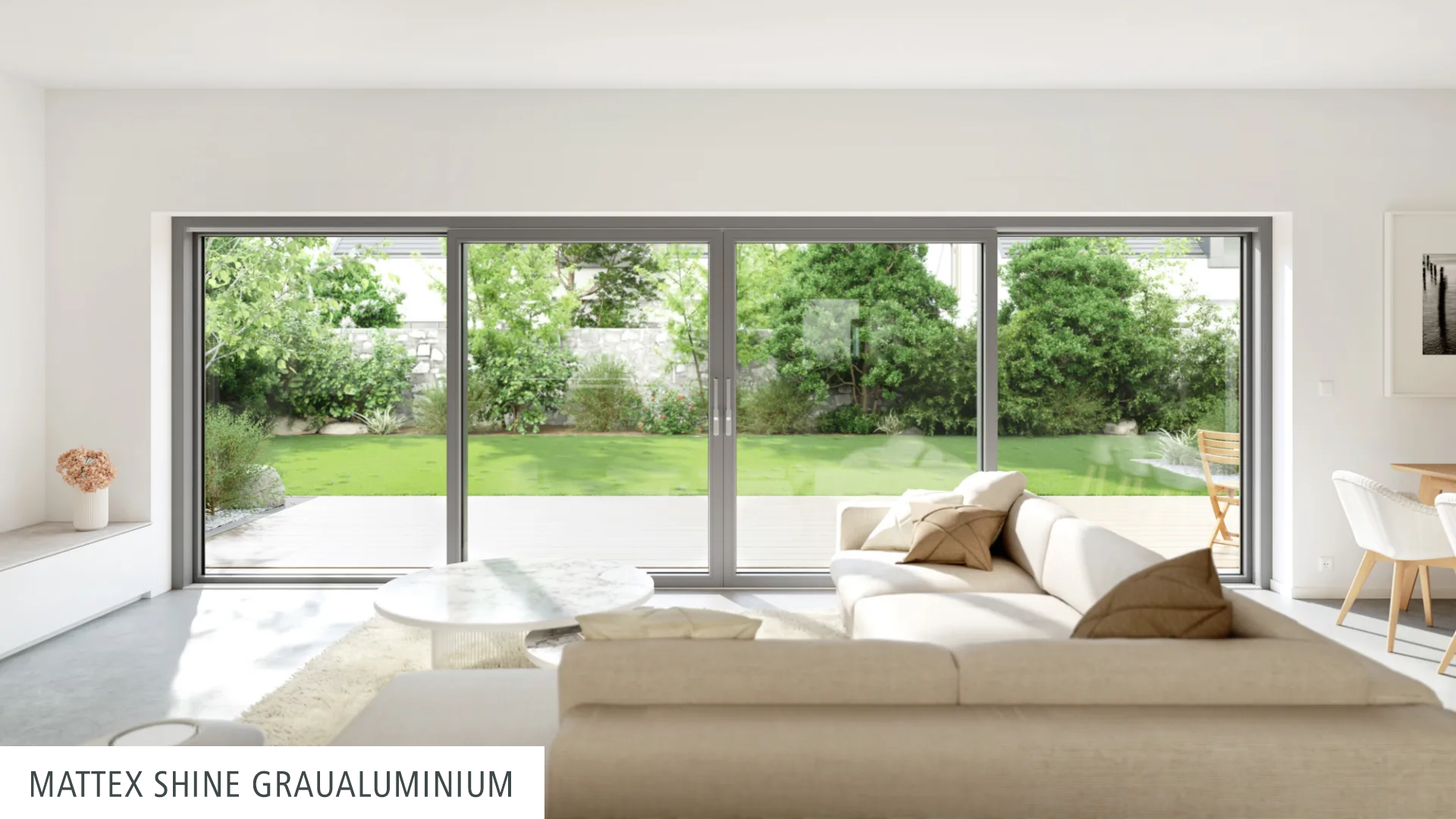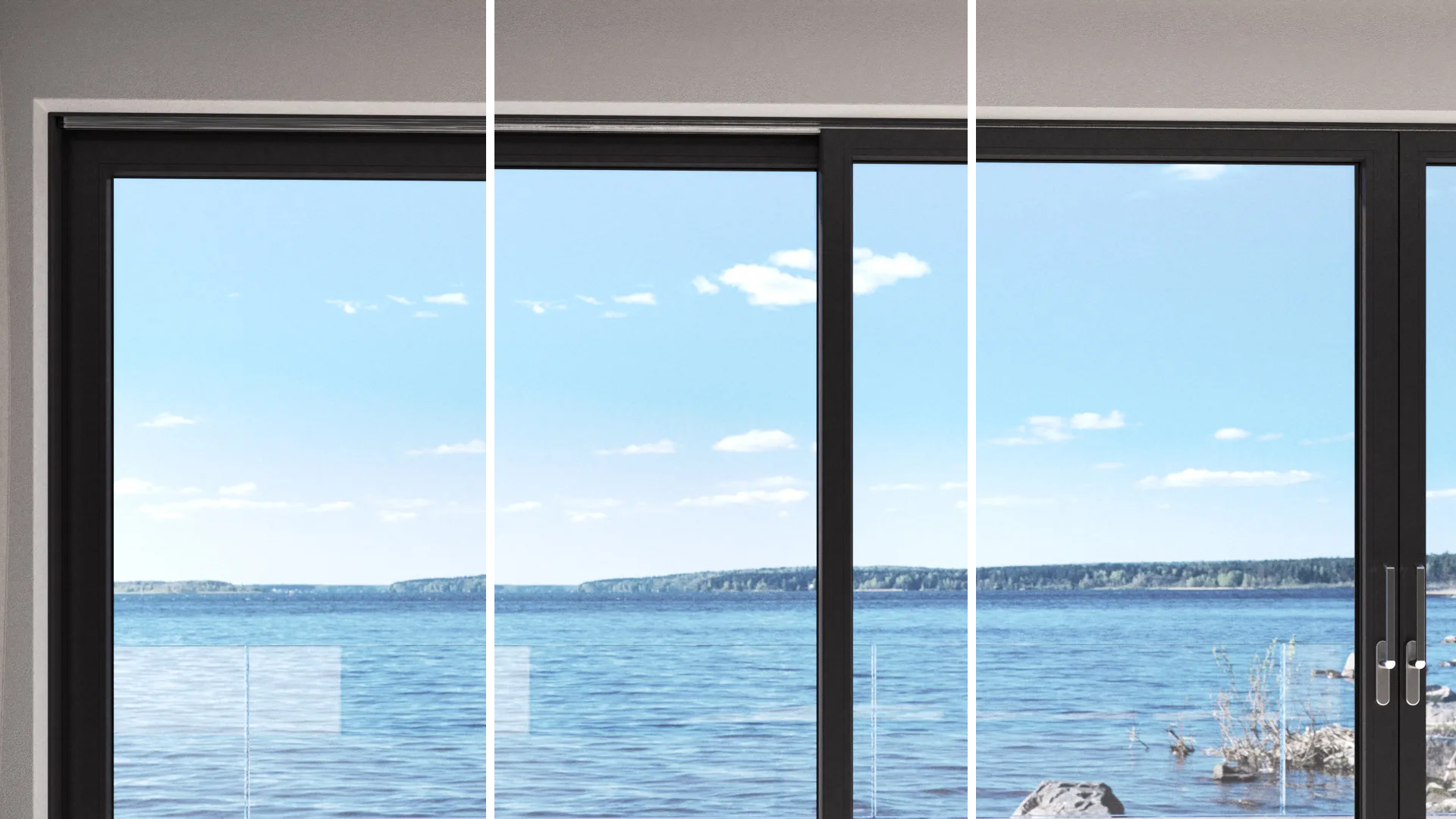 Ob großzügiger Durchgang durch die Mitte oder wahlweise durch die äußeren Schiebeflügel, in der zweiteiligen Version mit je einem beweglichen Flügel oder zwei wechselseitig verschiebbaren Elementen – dem Zugang in den Außenbereich sind nahezu keine Grenzen gesetzt.