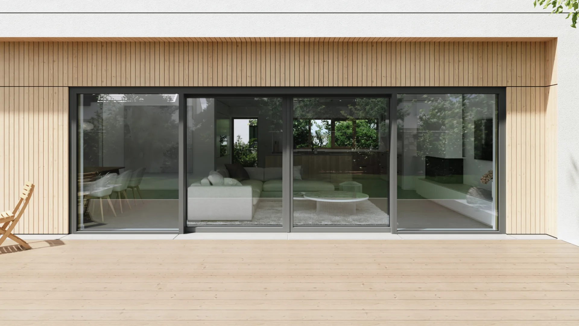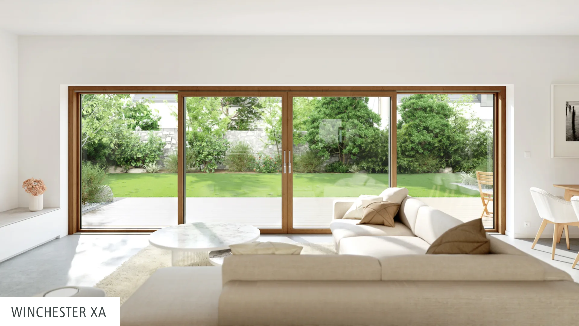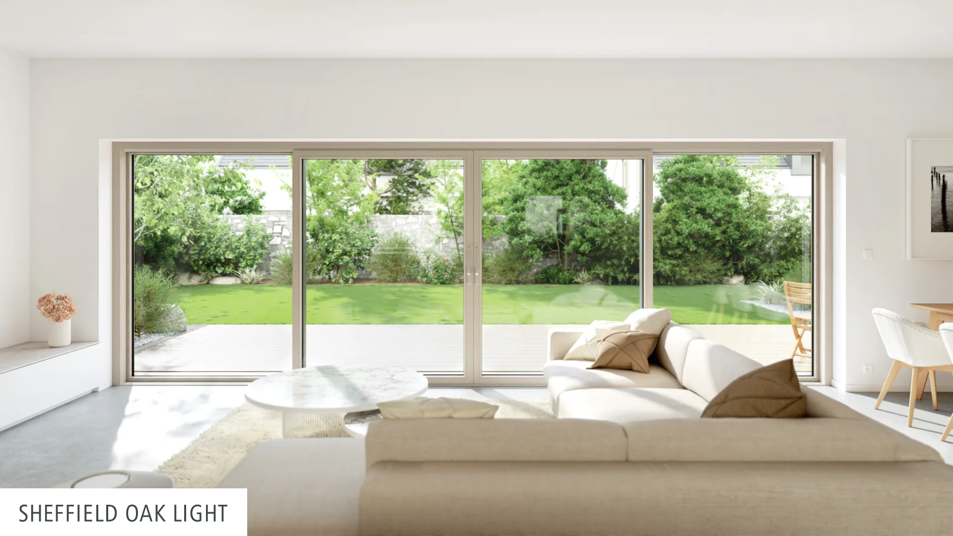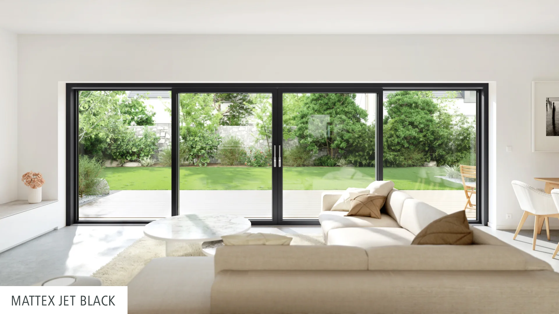 Ob großzügiger Durchgang durch die Mitte oder wahlweise durch die äußeren Schiebeflügel, in der zweiteiligen Version mit je einem beweglichen Flügel oder zwei wechselseitig verschiebbaren Elementen – dem Zugang in den Außenbereich sind nahezu keine Grenzen gesetzt.
